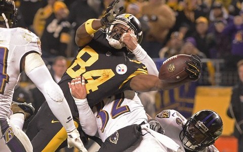 Instead, Big Ben Roethlisberger and the Steelers kept driving down the field until they reached the Baltimore 4-yard line with 14 seconds left and no timeouts. All the Ravens needed was to stop Pittsburgh in bounds, and when Antonio Brown caught the ball on the one yard line and was met by the two best Raven defenders, Eric Weddle and CJ Mosley, it looked like the game was over. Until Brown gave one last push and reached over the goal line for the game-winning touchdown.