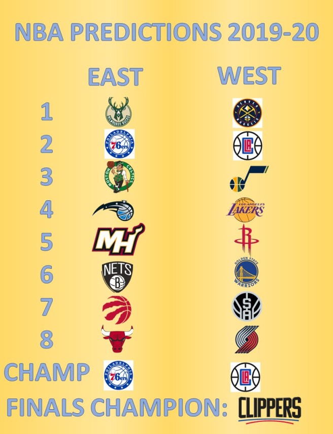 NBA Prediction Chart 2019-20 October 22, 2019 ~ jrike10 T-minus one year until Kevin Durant and the Nets take the league by storm. Share this: Share on X (Opens in new window) X Share on Facebook (Opens in new window) Facebook Like Loading... Related