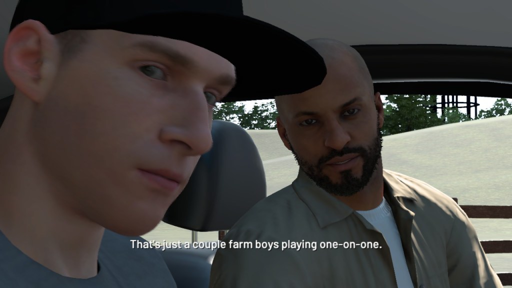 We next find AI in his basketball wilderness, Fort Wayne, Indiana, where most of his pre-NBA development will take place. He interacts with various members of the Fort Wayne Mad Ants: Howie, a reserve who introduces AI to the humbling life of a G League player and serves as the narrative’s comic relief; Paul Tatum, a former NBA star who serves as a mentor for AI; and Marcus Young, a hotshot guard who wants to be an NBA star and attempts to become one by any means necessary. The G League experience is different than the glamorous NBA life the media glorifies — when AI is asked for a picture at a fair, two young ladies gesture for him to be the photographer, not the subject. Users also meet two characters outside of the team— Nicky, AI’s romantic interest who is also a sportswriter, and Zack Coleman, played by actor Haley Joel Osment, who asks to manage AI’s social media brand.