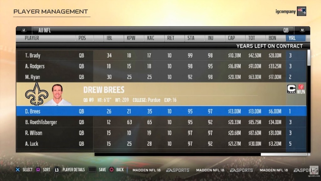 Player ratings are a key component of the major sports video game titles and are one of the main ways game studios develop on-field realism. Specialized rating adjustors rate each player on a series of abilities from 0 to 99, culminating in a final overall rating, that customizes each player’s strengths and weaknesses. In many recent games, these ratings update every week based on the most recent player performances. The ratings matter to the players, too — Chargers receiver Keenan Allen said that he would not play an edition of Madden NFL after receiving an 89 player rating that he perceived as too low, while Patriots quarterback Tom Brady publicly poked fun at his low speed rating (Rogers 2017). In fact, the NFL now publishes videos of players reacting to their ratings, a transaction between the product and its subjects that attempts to blur the lines between the real and the virtual and add meaning to the game’s world.