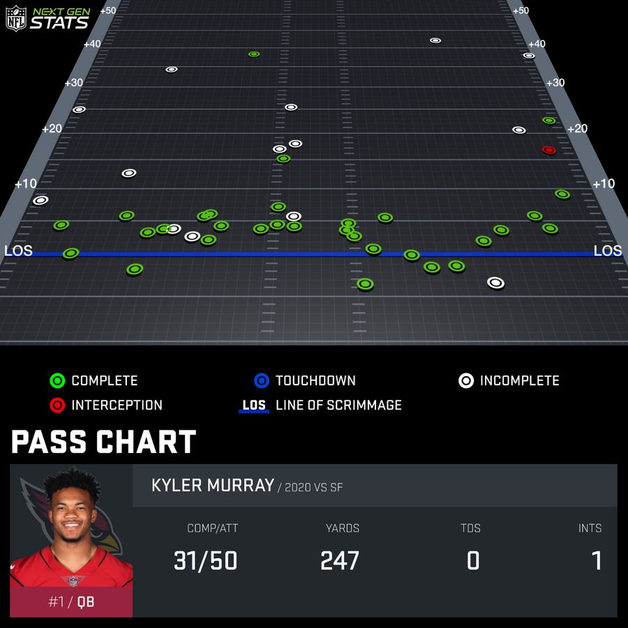 The Skinny: Saturday marked the first time all season that Kyler Murray had at least 50 passing attempts. Saturday marked the second time all season that Murray failed to throw a touchdown pass. Those two together help explain how a Cardinals team with playoff aspirations lost to C.J. Beathard and the depleted Niners.