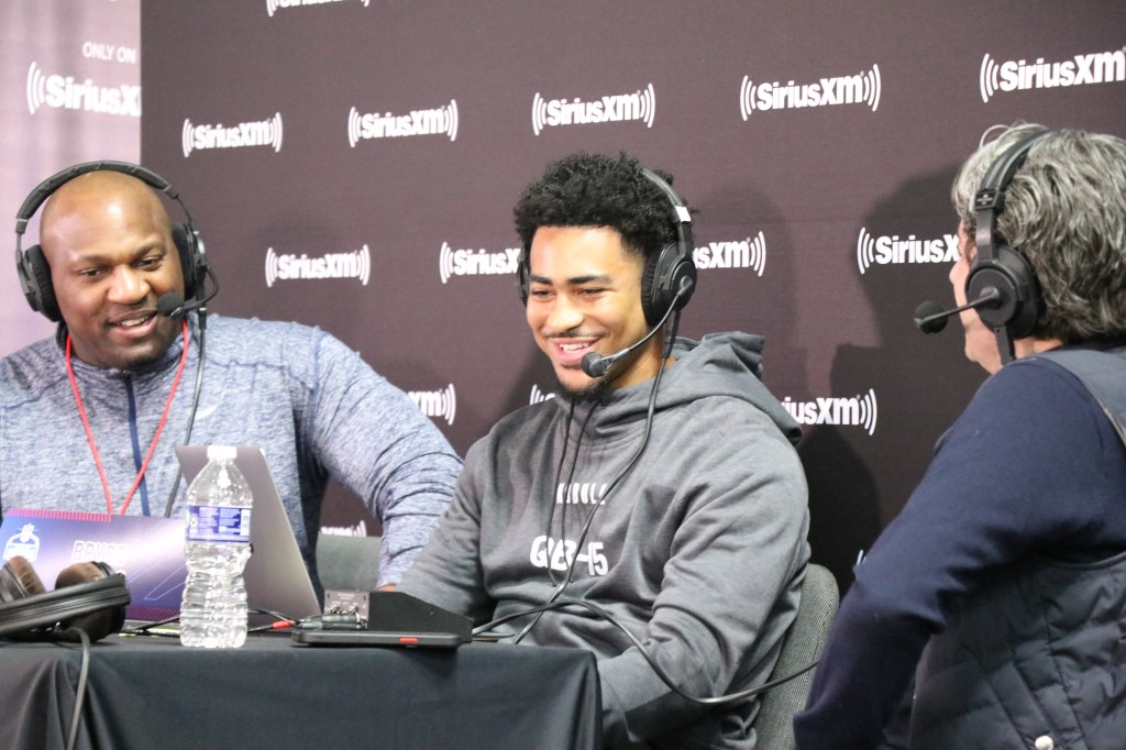 Alabama quarterback Bryce Young has been viewed as QB1 for most of the draft process, though concerns about his size could drop him later in the top 5. Here, he rounds the media circuit after his press conference with reporters.