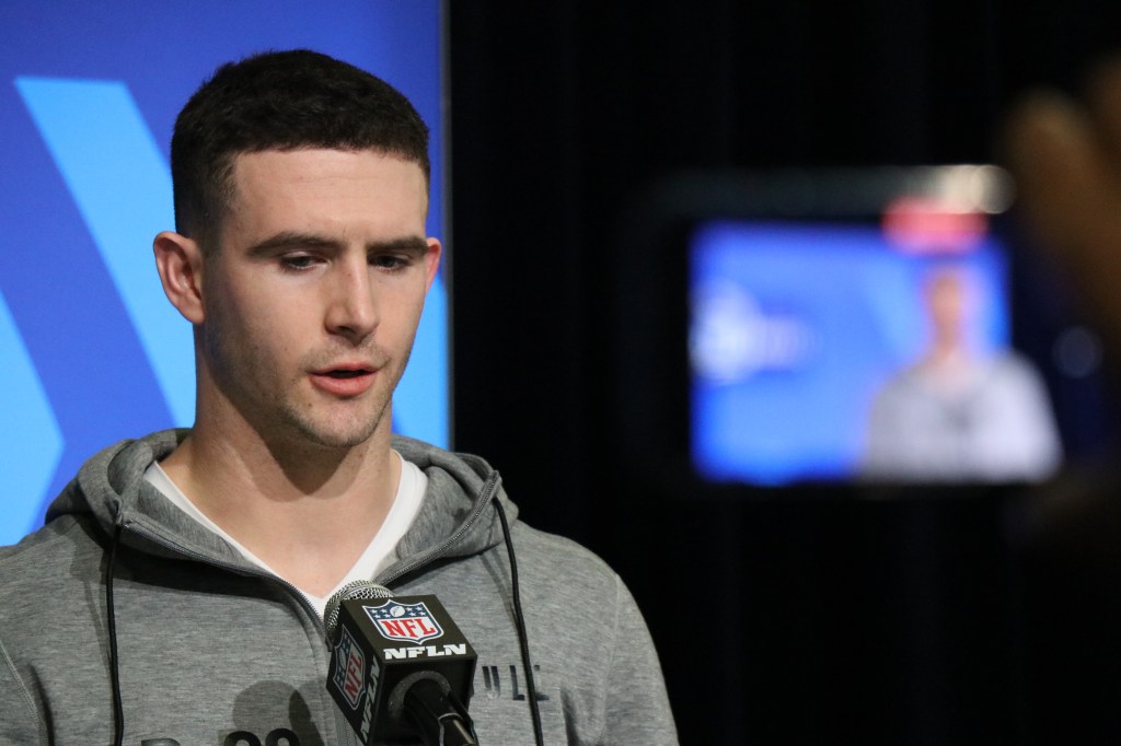 Two-time national champion quarterback Stetson Bennett answers questions at his press conference. Bennett has had legal troubles and is the oldest quarterback in his class, but had a strong performance in the combine drills.
