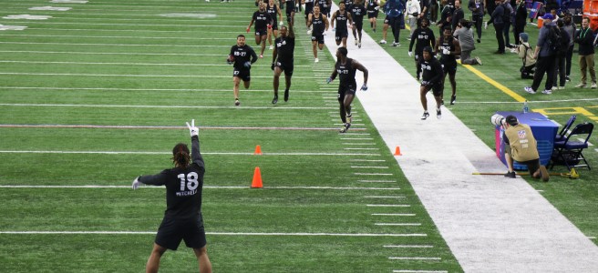 On the last rep of the combine, all the running backs took off toward the end zone for a celebration.