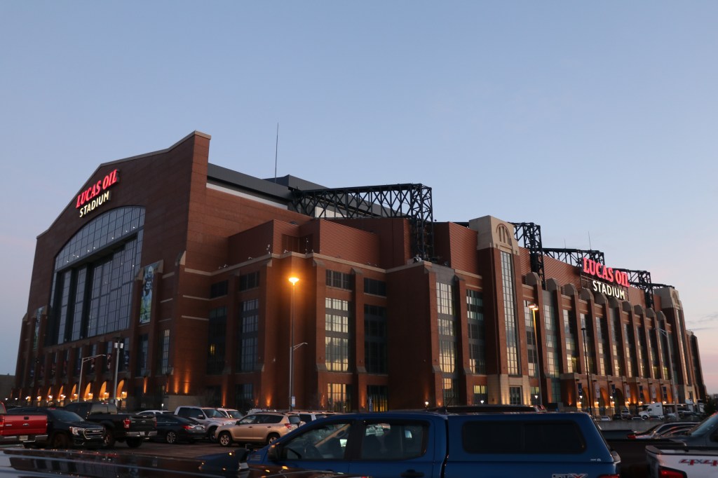 The exterior of Lucas Oil Stadium on the final night of the NFL Combine. Lucas Oil Stadium has hosted a Super Bowl, national championships and the annual combine.