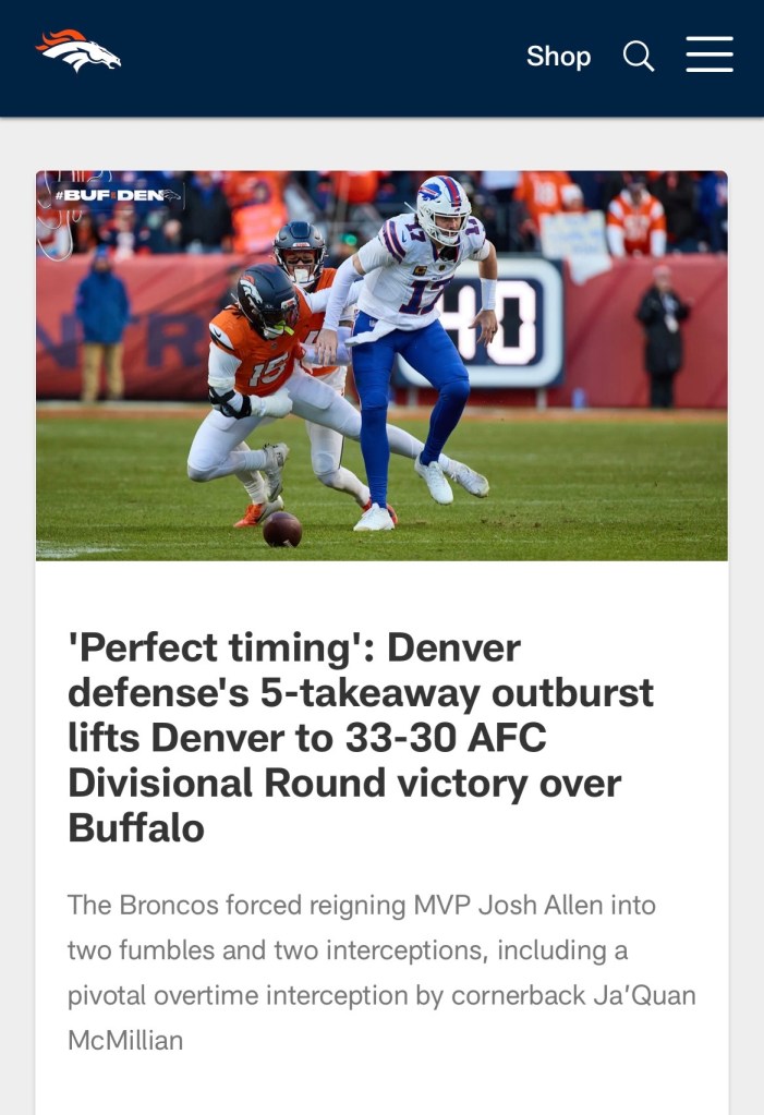 My efforts in video posting and live blog updates took some time to get going as well as my laptop encountered issues with poor connection, but when the game started heating up, the laptop turned its afternoon around and worked without a hitch. I did not discount Josh Allen and the Bills’ feared offense, but a 10-point lead was significant in a game in which the visitors had to overcome the Mile High City altitude and the Denver defense.